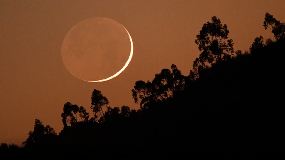Earthshine is the effect of light from the sun reflecting off of Earth’s surface and illuminating a new moon. The strange phenomenon makes the dark face of the moon appear slightly illuminated in the night sky.