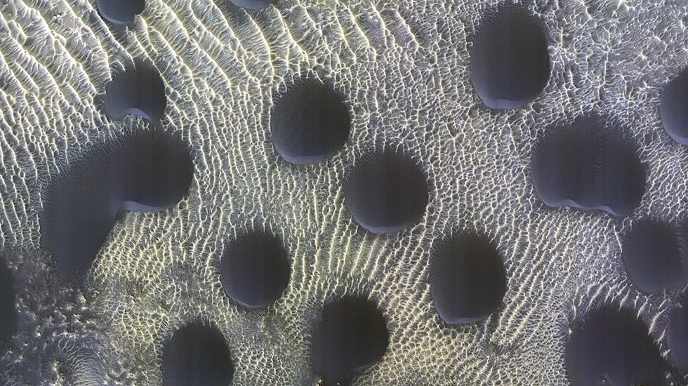 The High-Resolution Imaging Experiment, or HiRISE, aboard the Mars Reconnaissance Orbiter spotted the dunes as it studied how frost thaws at the end of Mar’s winter.
