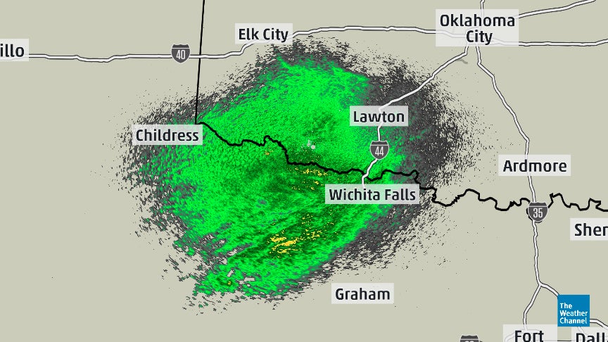 The green and yellow radar echoes in this image from July 22, 2015, show grasshoppers and beetles detected by radar near the border between Texas and Oklahoma, according to a tweet sent by the NWS office in Norman, Oklahoma. Since the radar is very sensitive, you would not see a huge swarm at ground level, the NWS said.