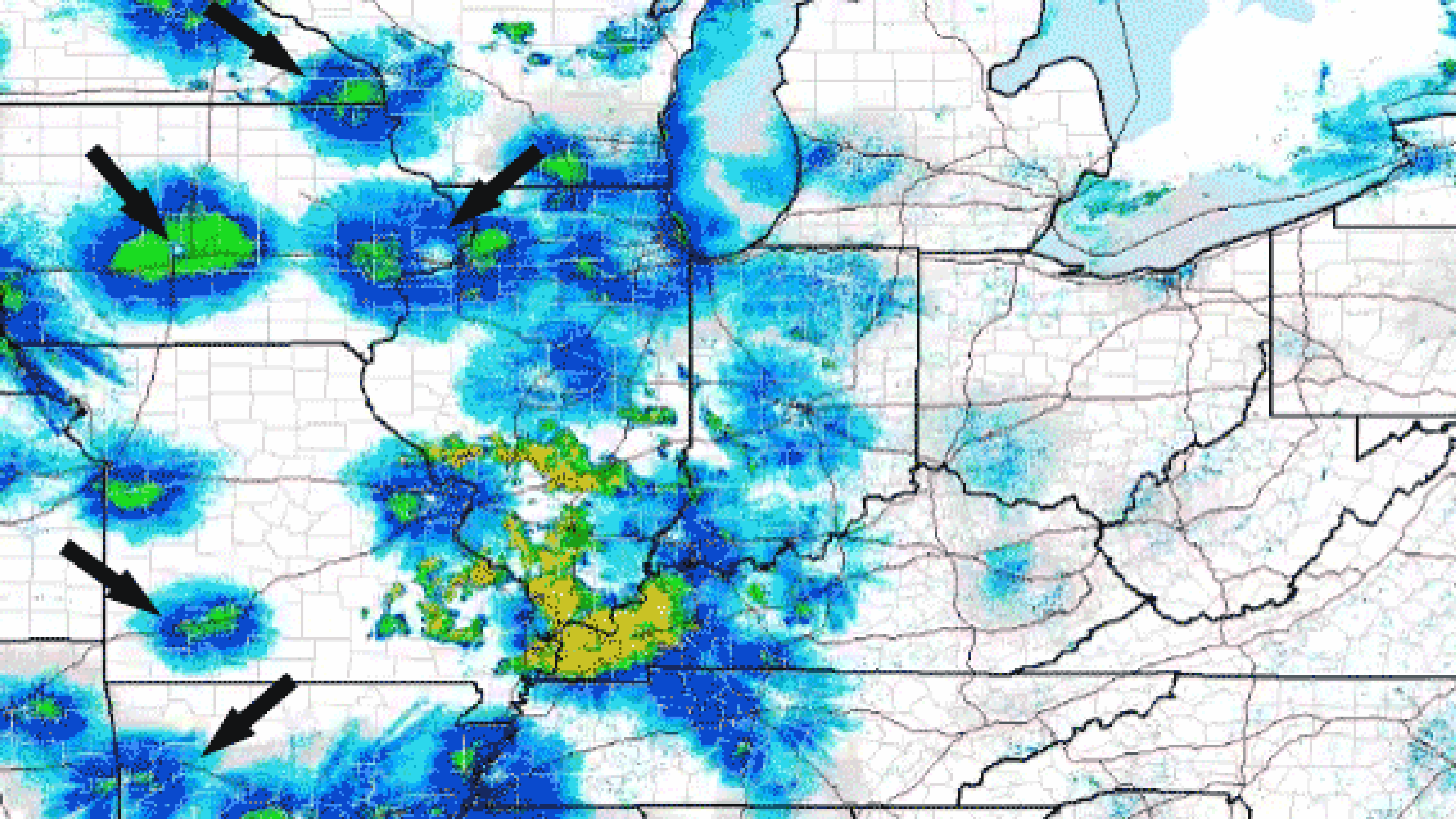 Turbines from the Bulter Ridge wind farm in Wisconsin mess with radar data.