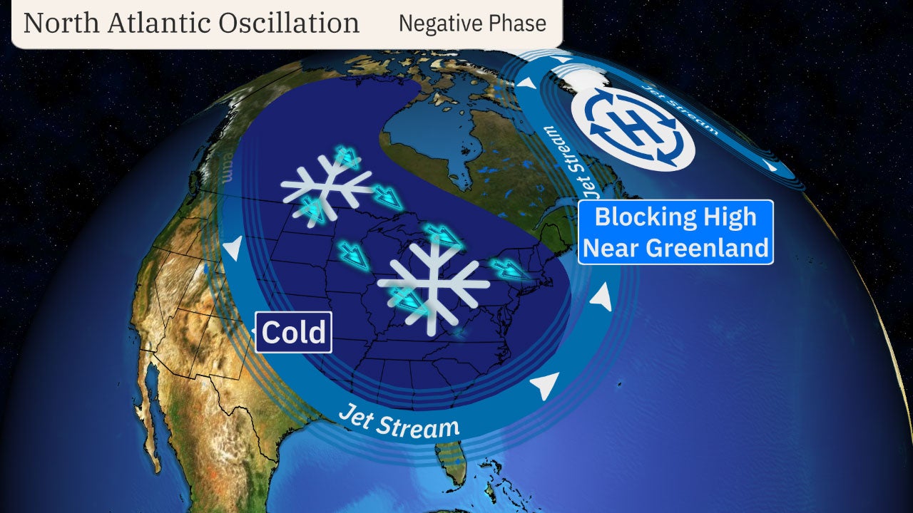 This can pull cold air from Canada into the eastern U.S. and also instigate East Coast snowstorms.