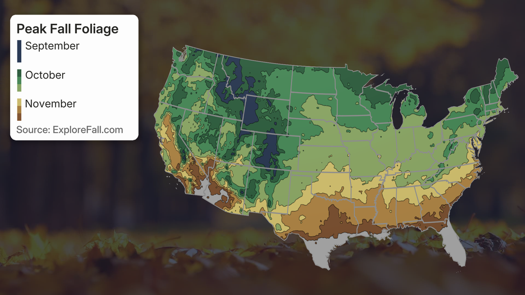West: In the West, fall color is patchy. Parts of the Rocky Mountains are already seeing a change in color, but there are still plenty of spots where there has been no observed change in color. Parts of the northern and central Rockies may reach peak foliage as early as mid-September.