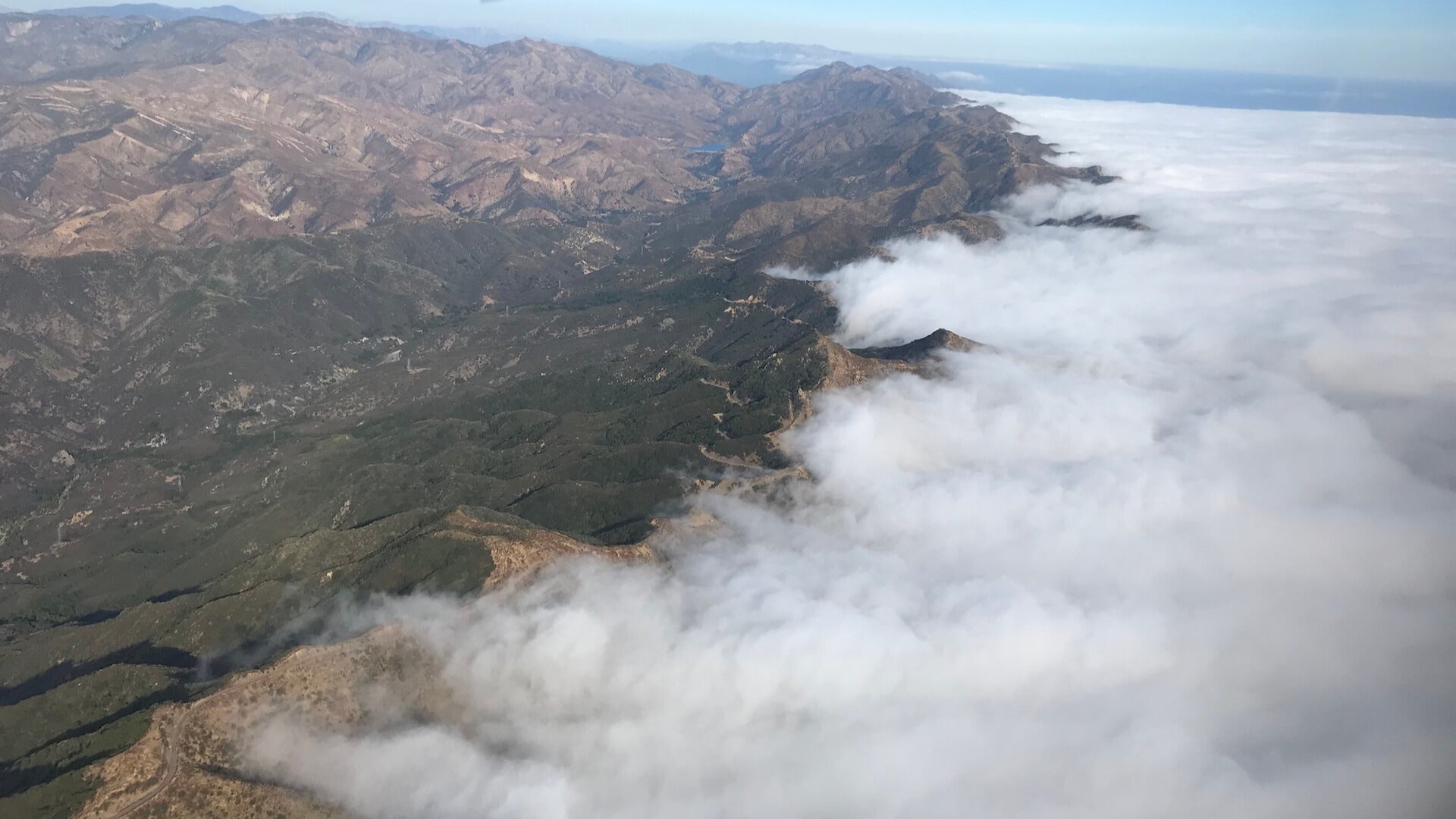 Marine layer rolling in over the Santa Ynez mountains near Santa Barbara.