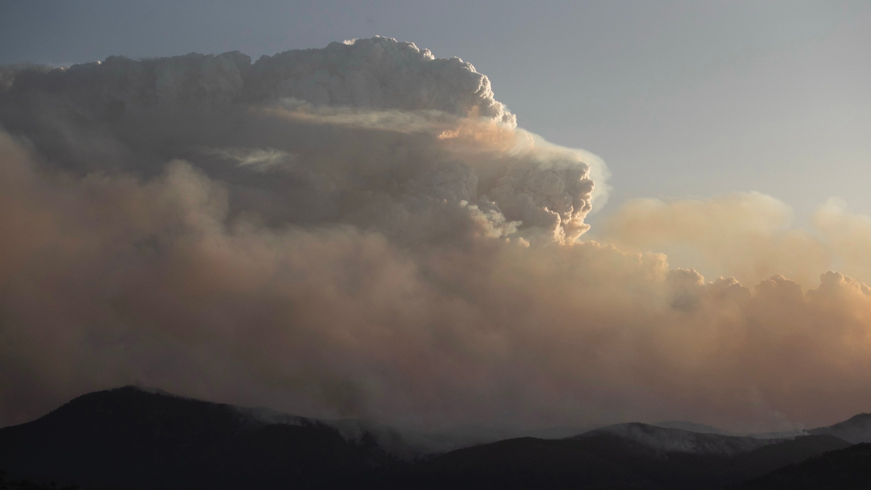 A pyrocumulonimbus cloud is generated by the intense Orroral Valley bushfire burning to the south of Canberra in January 2020.