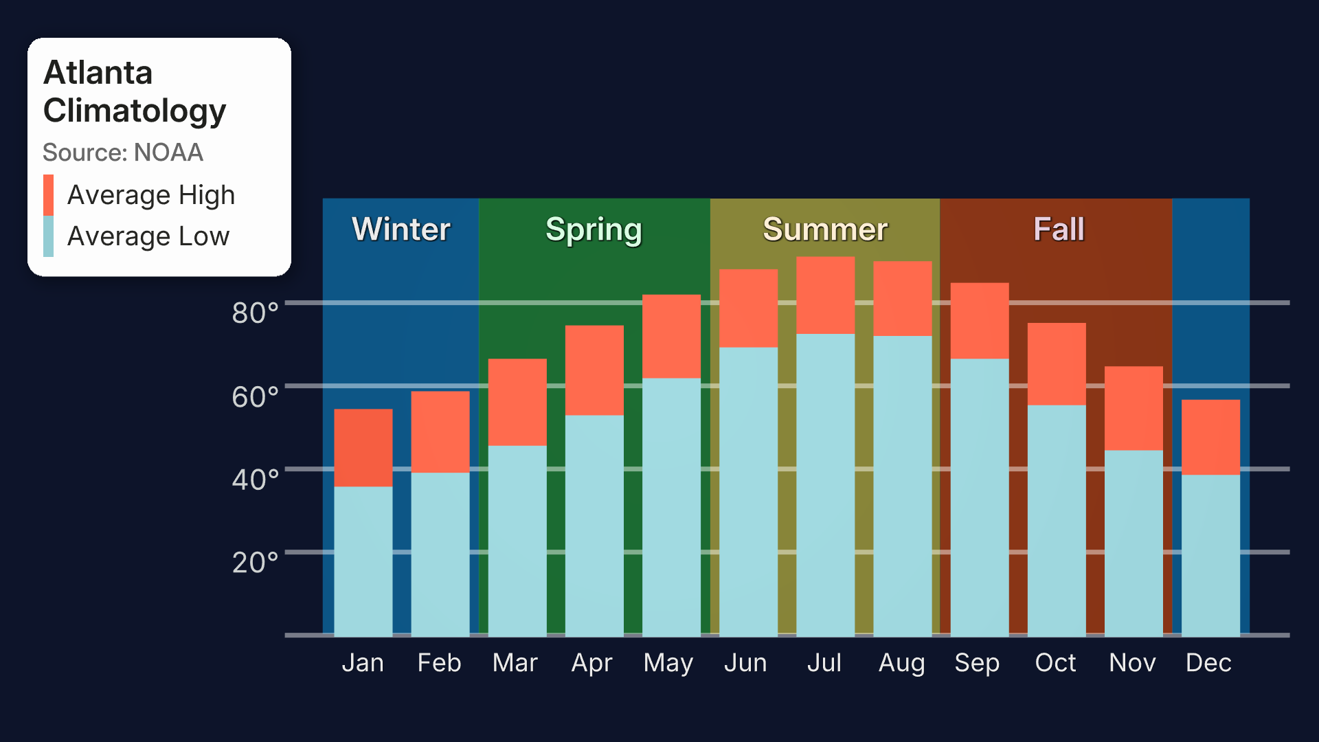 By grouping the seasons by temperature, you’re also grouping the seasons more by common weather patterns. People often think of December as winter even though, technically, most of the month is fall.