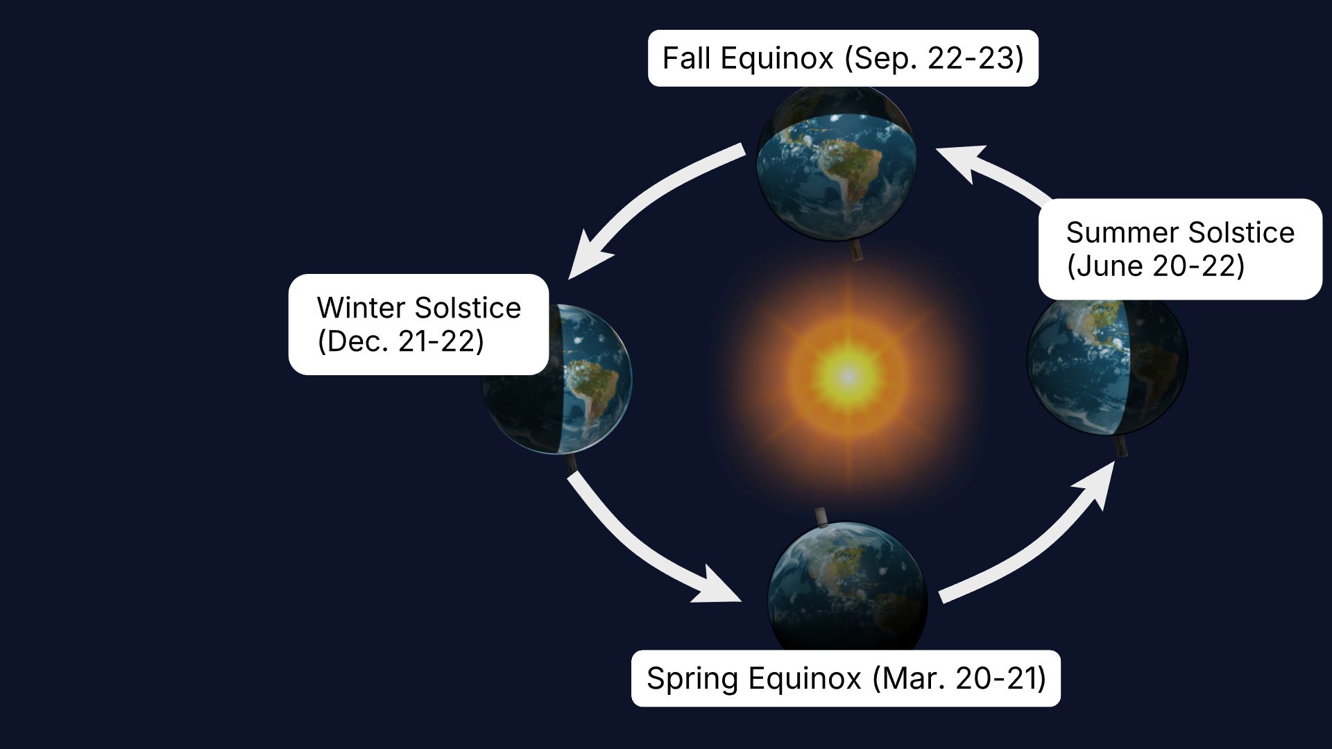 The reason why we have seasons in the first place is because of the tilt of the Earth. It causes the sun's angle in the sky to change throughout the year, which leads to different amounts of sunlight throughout the year.