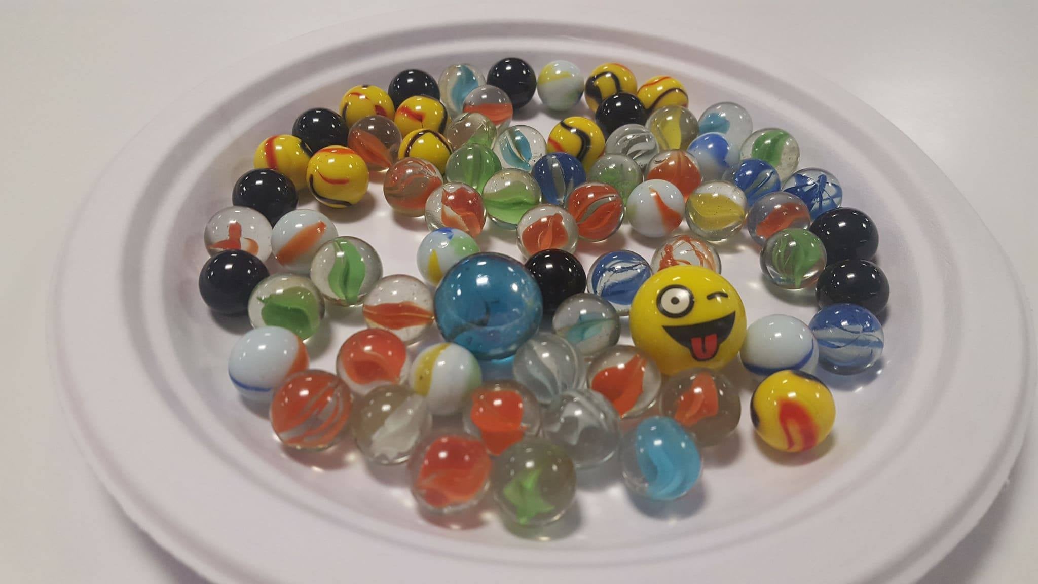 Outside of legalities, marbles can be as large as 3 inches in diameter or as small as peas.