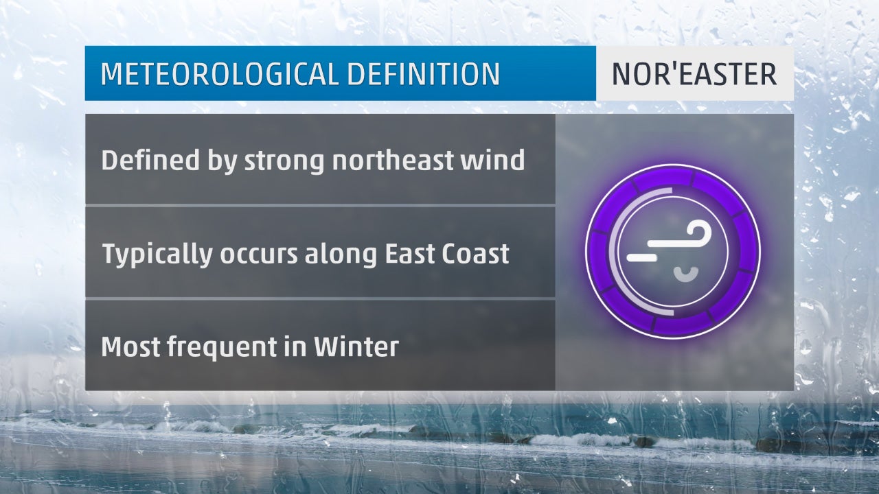 A nor'easter may bring heavy rain or snow, strong winds, coastal flooding and rough seas to the affected areas.