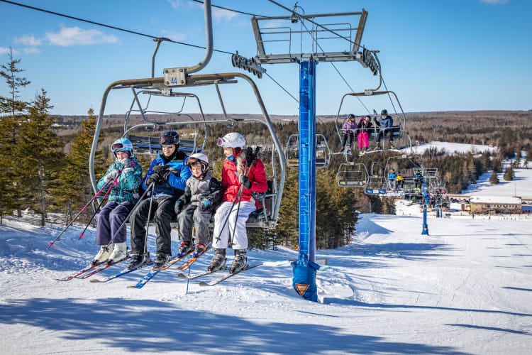 Ski Ben Eoin offers night skiing and features a small collection of lifts, including a quad chair. Below the slopes is the briny Bras d’Or Lake, a UNESCO-designated biosphere popular amongst sailors. When they’ve finished a day on the slopes at Ski Ben Eoin, skiers and snowboarders can congregate in the ski area’s Broken Buckle pub for eats and drinks.