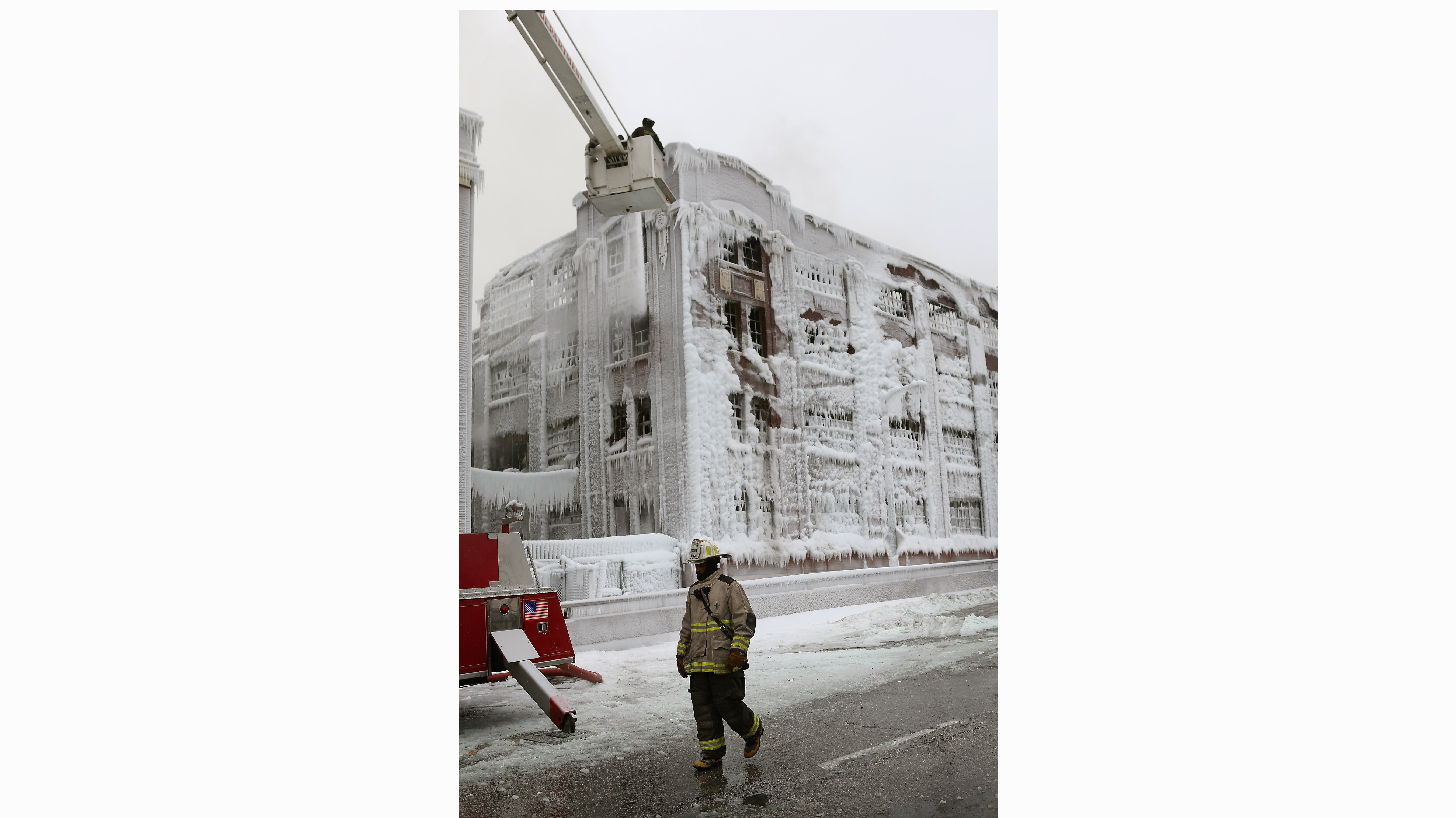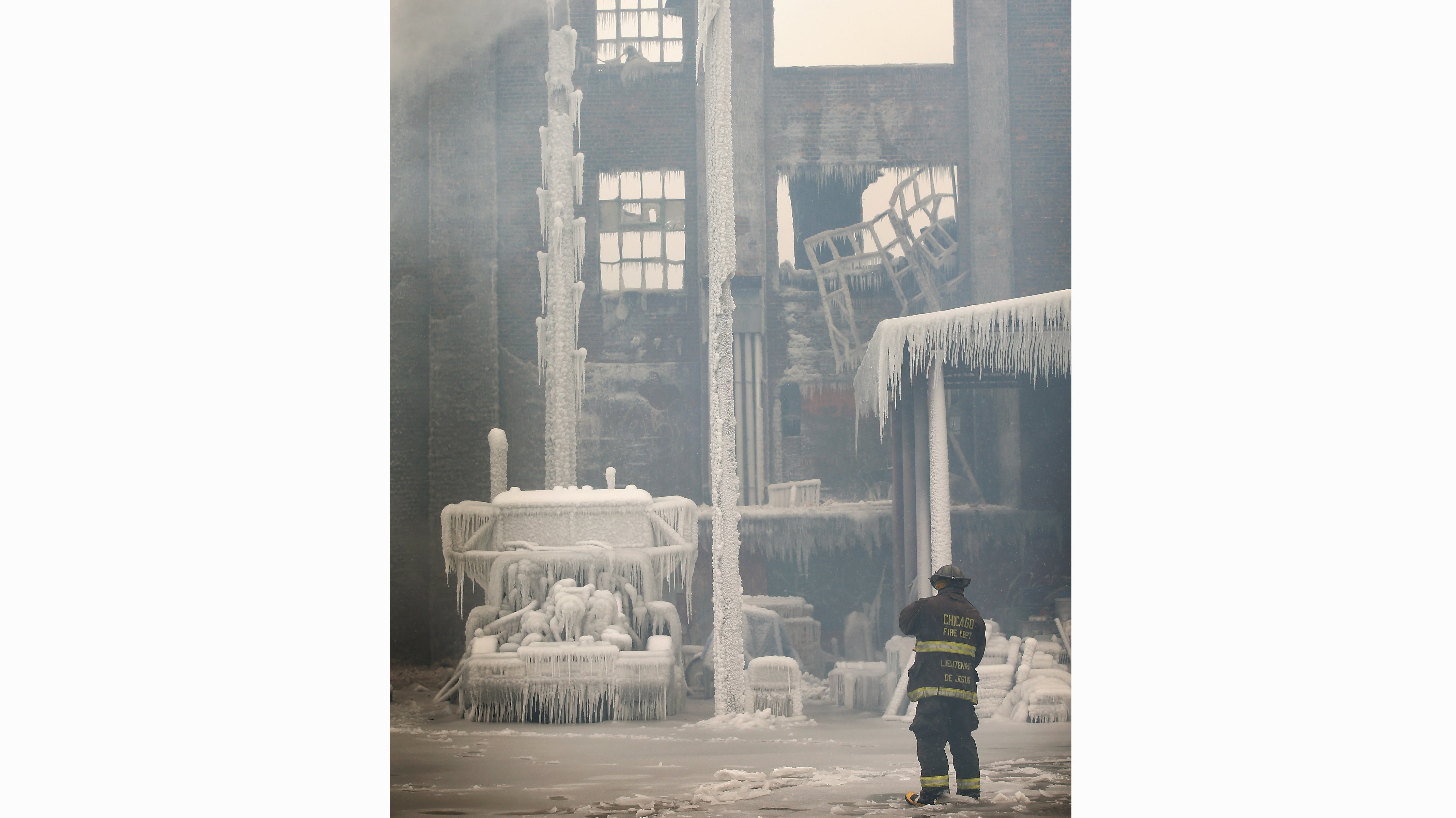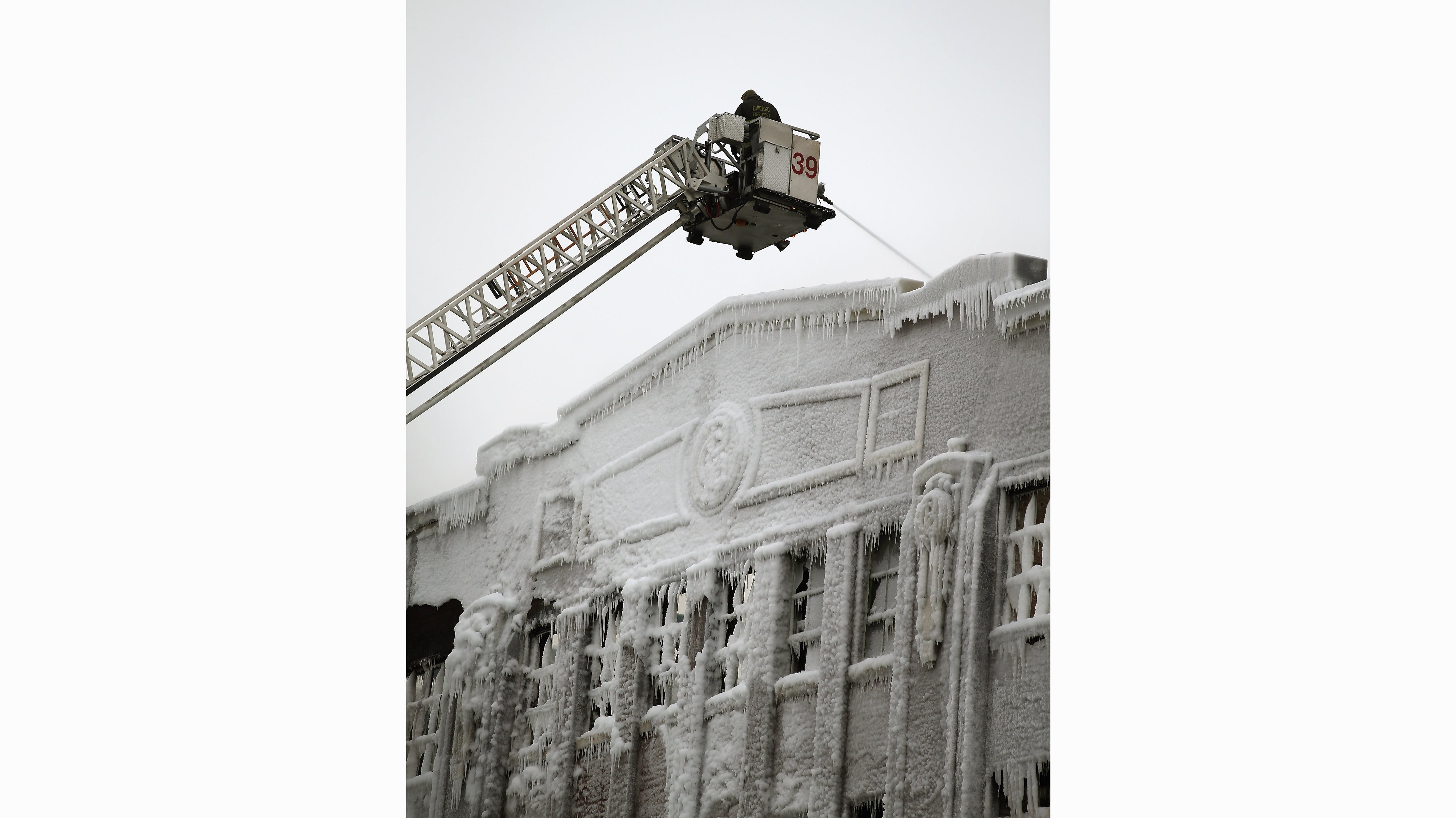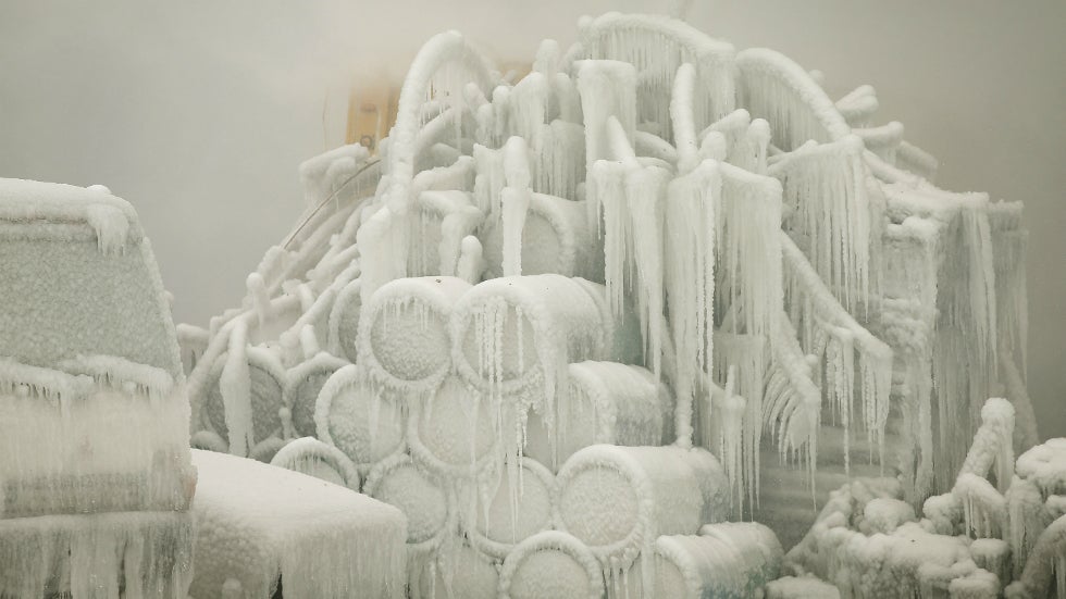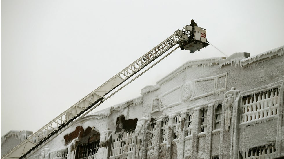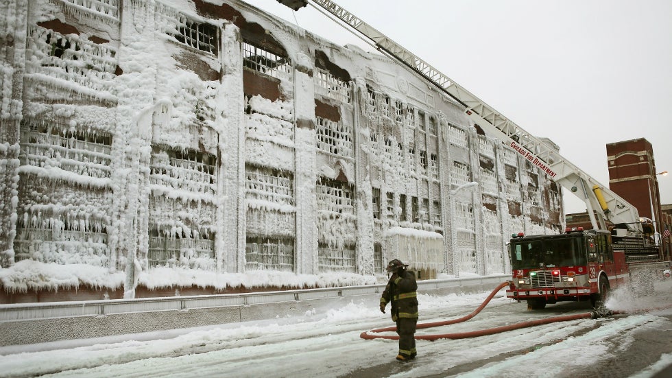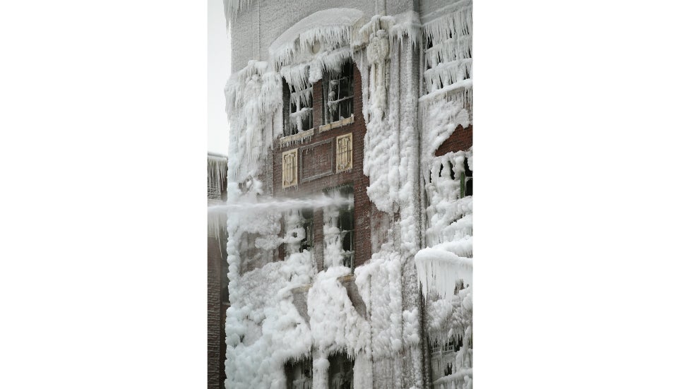This cold-weather phenomenon, in which the water freezes on contact with a structure, isn’t unique to this Nebraska fire. In January 2013, for example, firefighters battling a five-alarm conflagration at a vacant Chicago warehouse left the entire building blanketed in ice.
