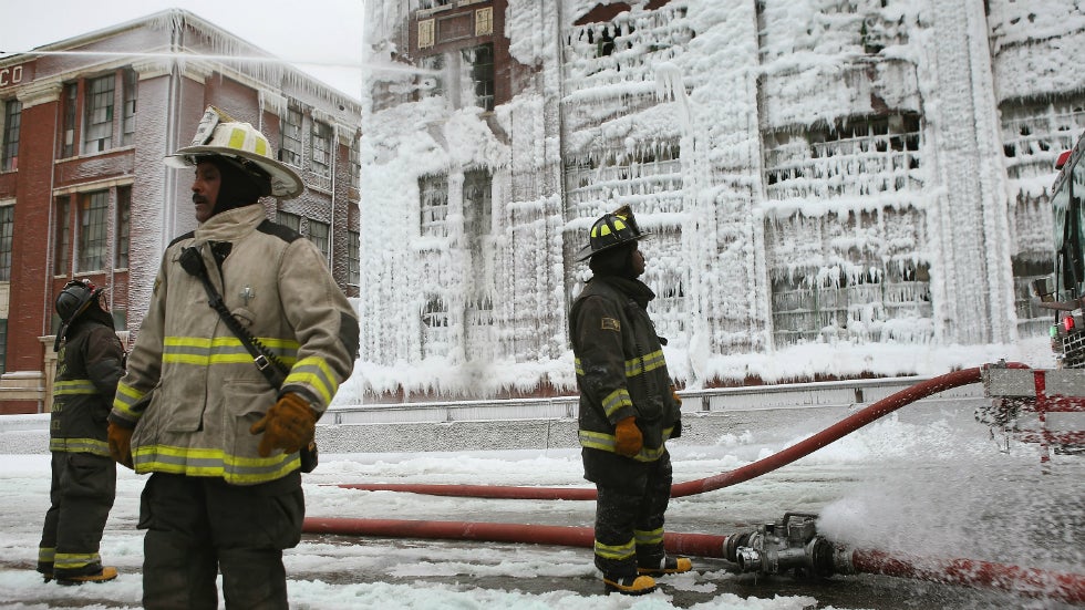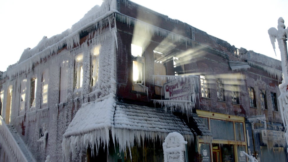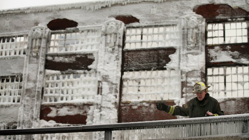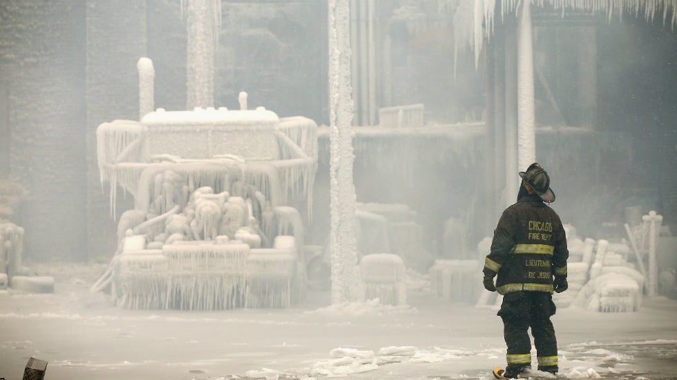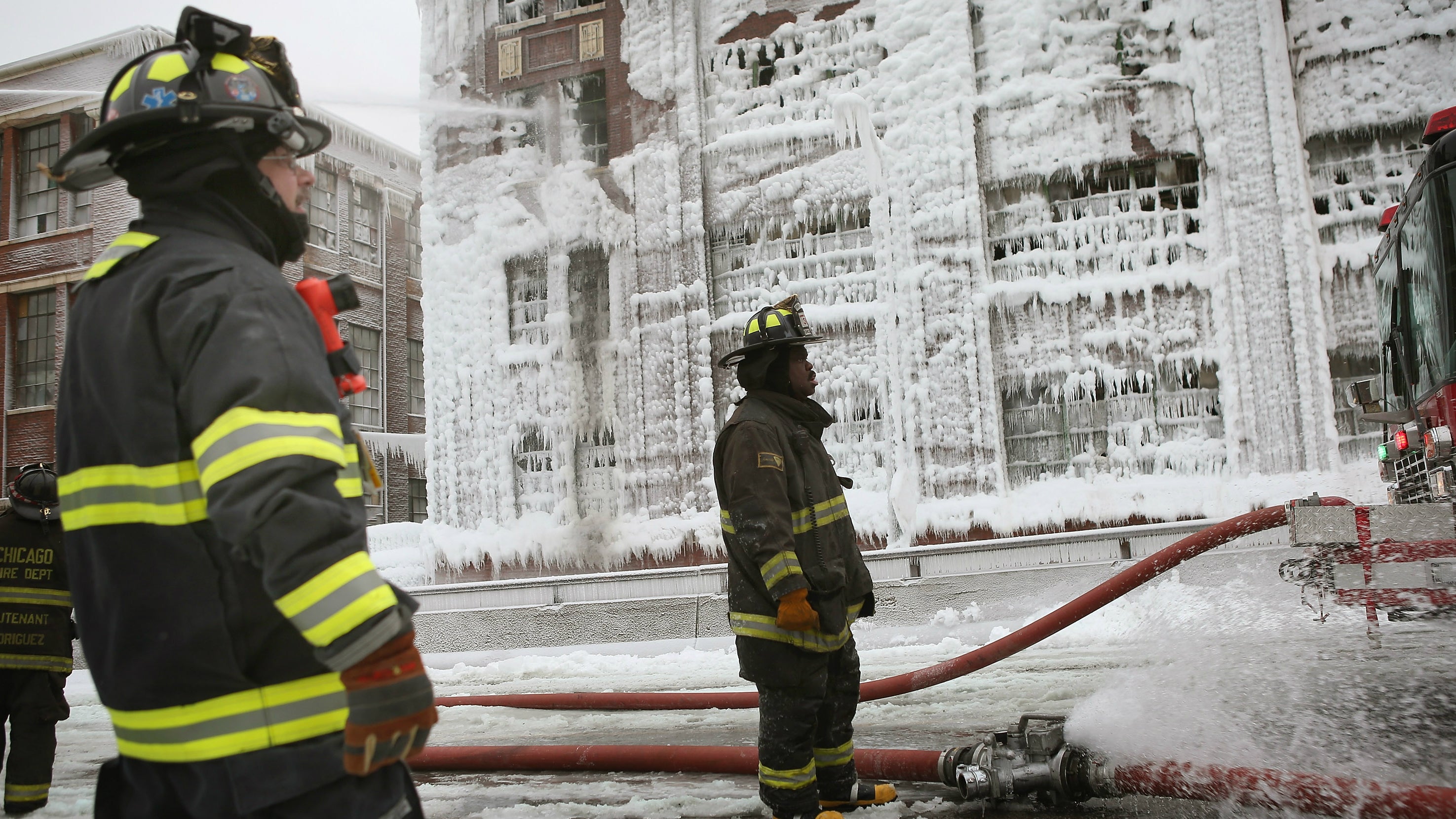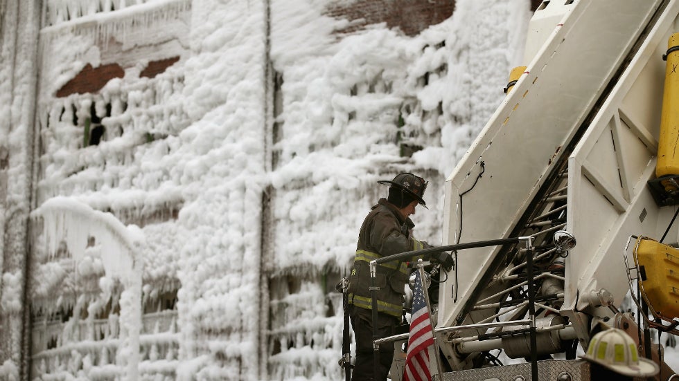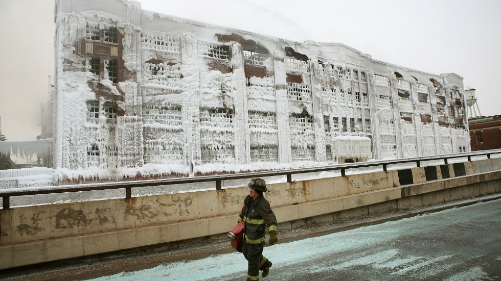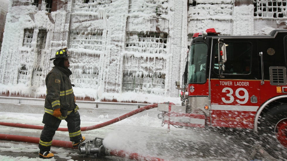 This cold-weather phenomenon, in which the water freezes on contact with a structure, isn’t unique to this Nebraska fire. In January 2013, for example, firefighters battling a five-alarm conflagration at a vacant Chicago warehouse left the entire building blanketed in ice.
