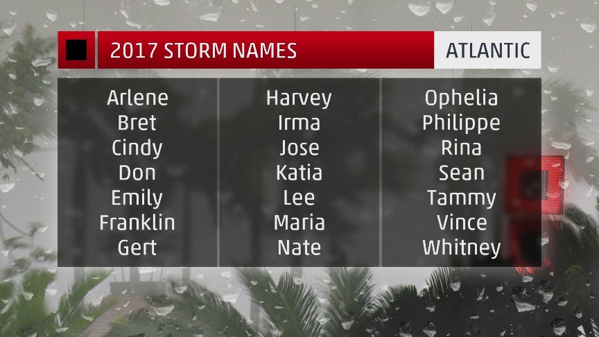 2017 Atlantic hurricane season names.