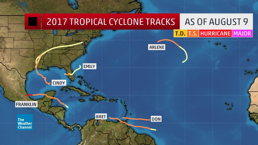Atlantic named storm tracks in 2017, through August 9.