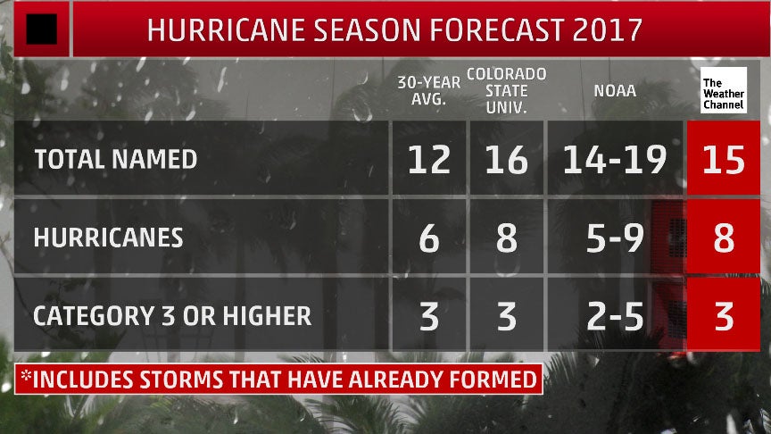 The Weather Company, an IBM Business, updated its seasonal forecast in July and also expects a total of 15 named storms, eight hurricanes and three major hurricanes this season. This is an increase from its earlier forecasts as well, mainly due to the same factors stated in the CSU outlook.