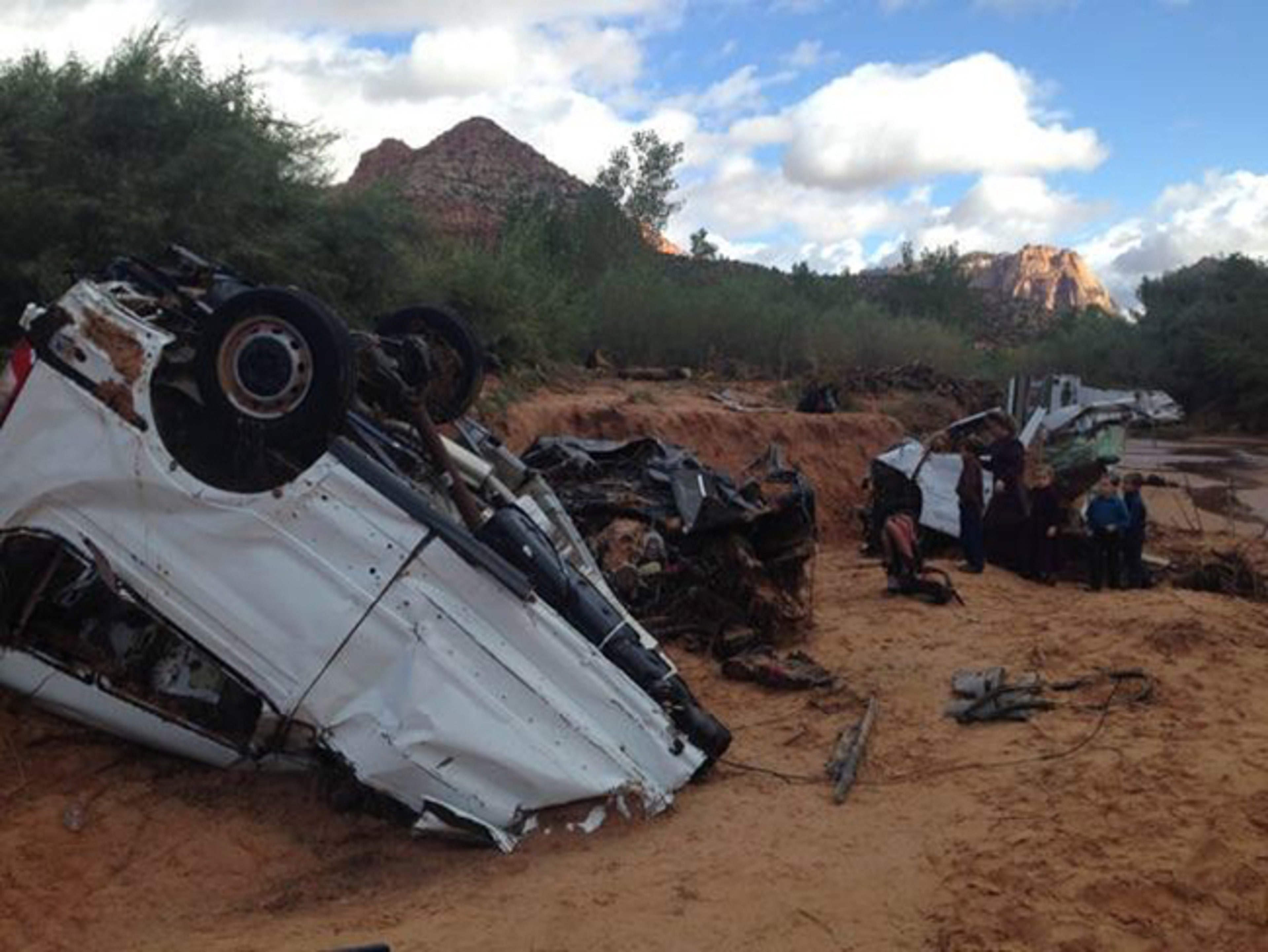 The remains of a van that was crushed and tossed by flood waters near Hilldale, Utah, on September 14, 2015. The heavy rain was triggered by remnant moisture from what was once Hurricane Linda.