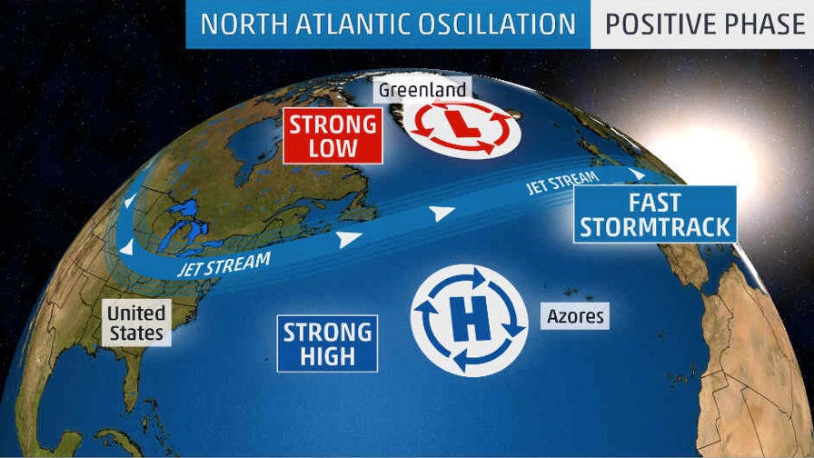 Typical setup for the positive phase of the North Atlantic Oscillation.