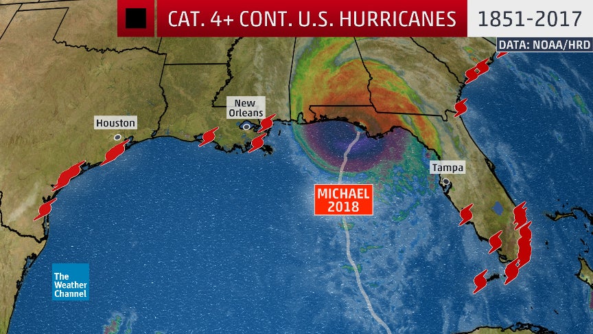Florida had the most such Category 4-plus landfalls with 13, followed by Texas with 7. All 13 of those Florida landfalls had happened in South Florida prior to Michael.