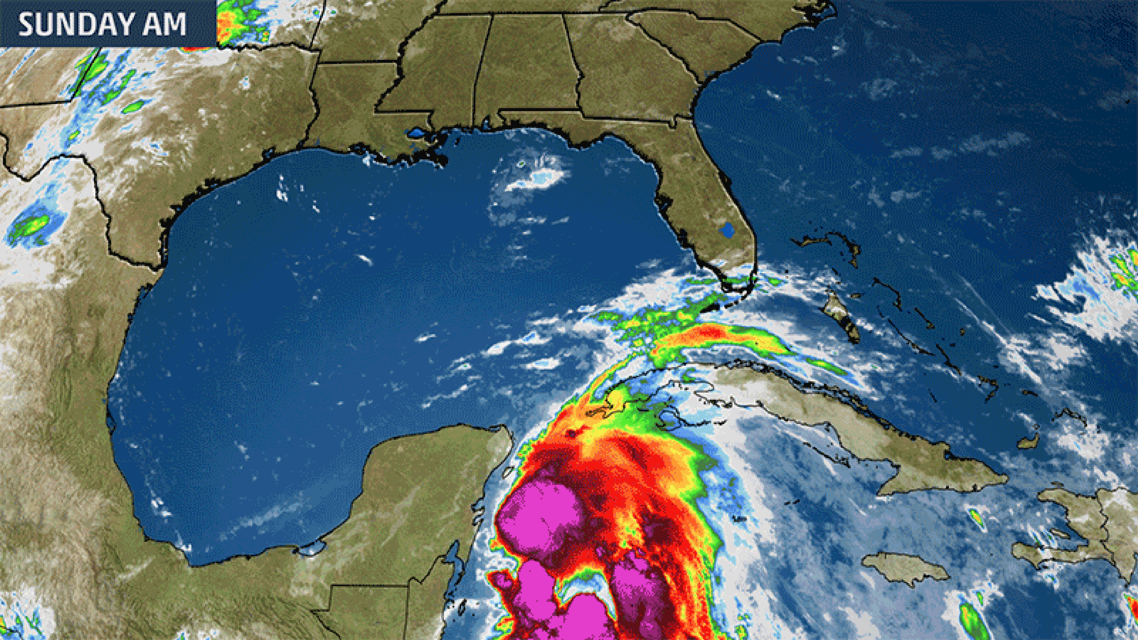 Michael rapidly intensified from a tropical depression with 35 mph winds on Sunday to strong Category 4 hurricane with maximum sustained winds of 145 mph by Wednesday morning. This animation below shows how the hurricane intensified as it tracked from the northwest Caribbean into the Gulf of Mexico.