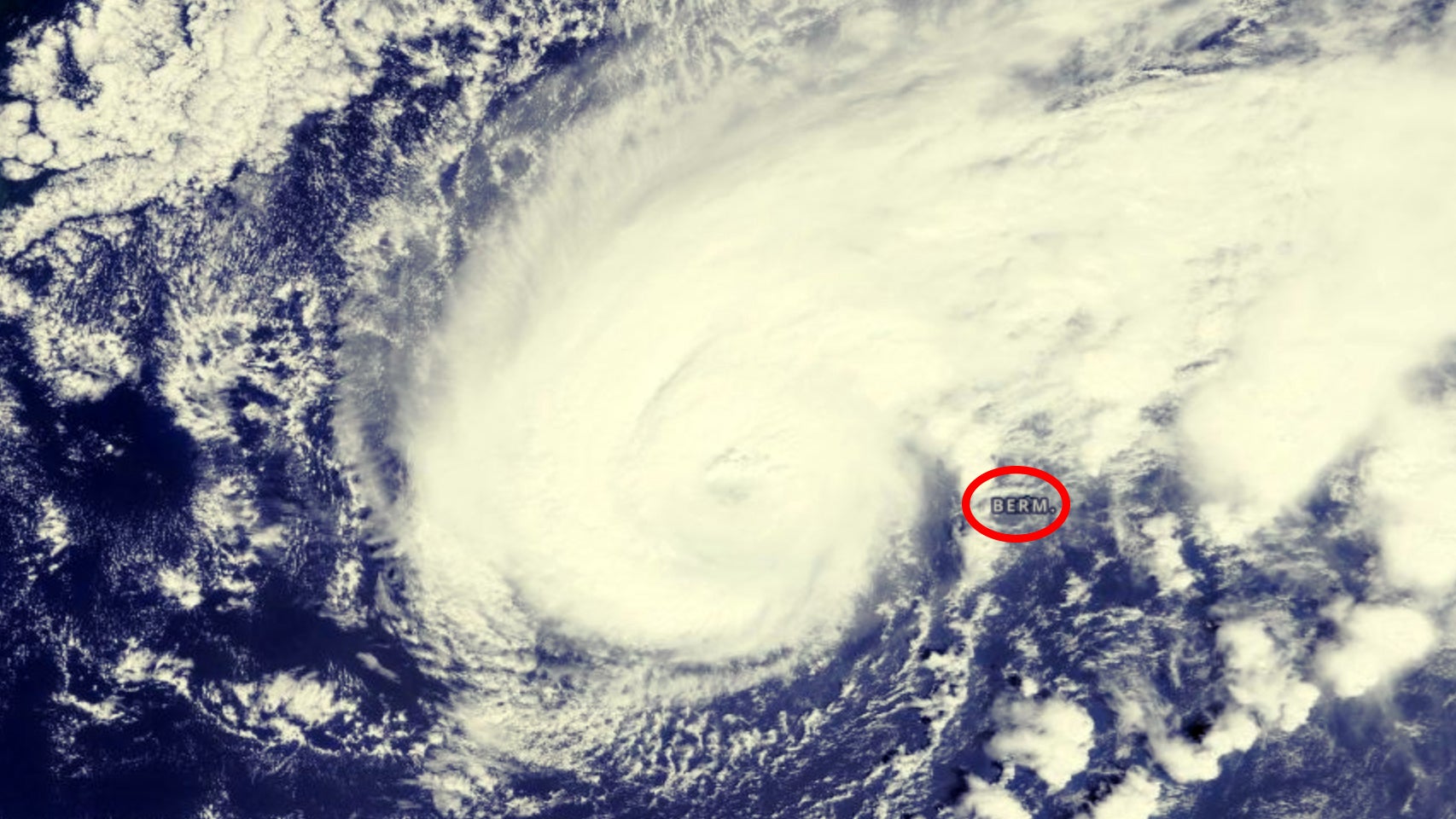 Humberto approaching Bermuda on Sept. 18, 2019. Bermuda is highlighted by the red circle.