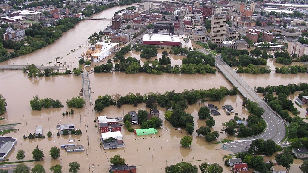Parts of Binghamton, New York, were flooded after heavy rain from the remnants of Tropical Storm Lee in early September 2011.
