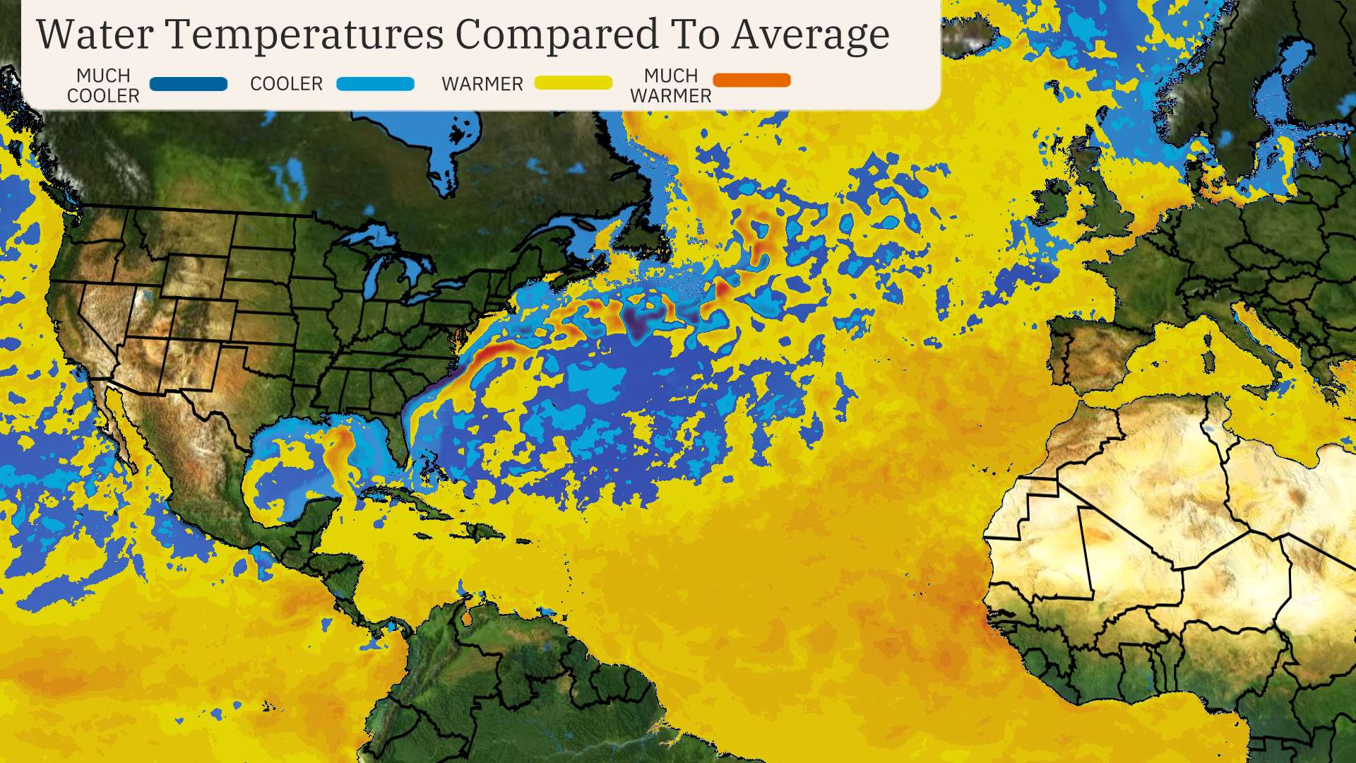 Sea surface temperatures are also above-average across the rest of the Atlantic, too.