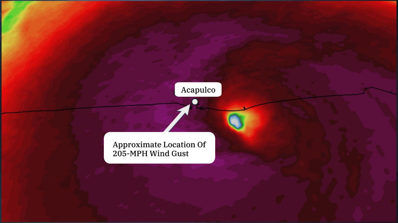 A​n over 200 mph wind gust: The NHC report reiterated a peak wind gust of 205 mph was measured by instruments along the northwest side of Acapulco Bay. As senior meteorologist Chris Dolce wrote after the observation came to light, this gust from Otis was among the strongest wind speeds recorded on Earth.
