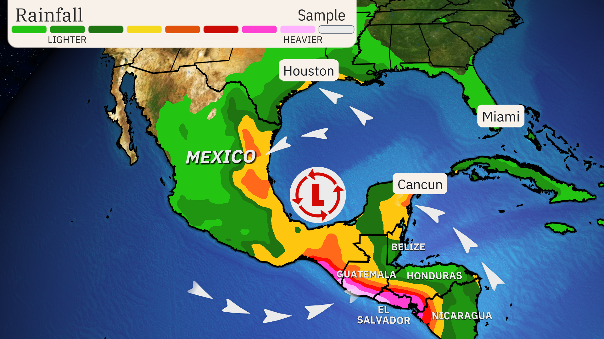 The biggest impact from CAGs is often very heavy rainfall that can last a week or more. As the large low sits over or near Central America, it wraps deep moisture into Central America from the Pacific, the Caribbean and Gulf of Mexico.