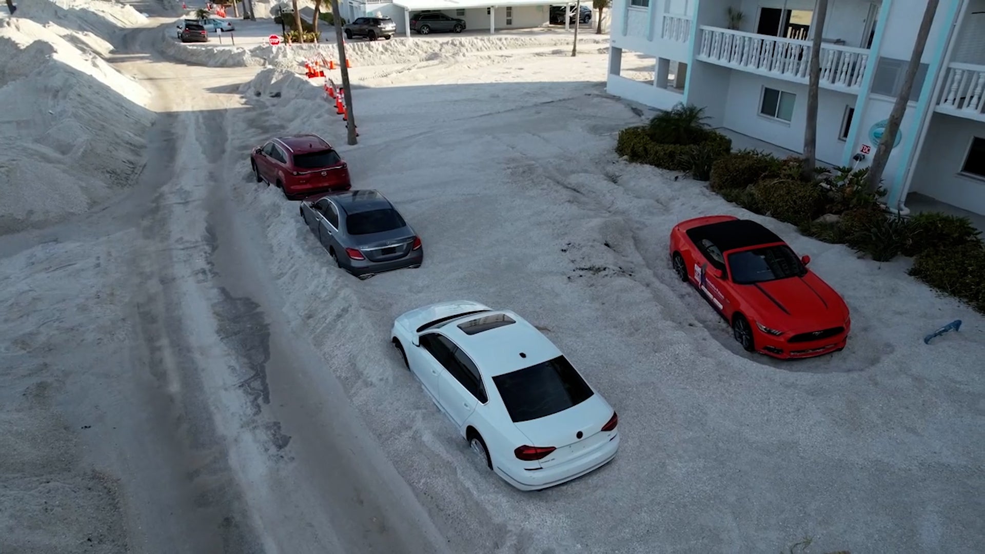 A week later, several feet of sand covered roads along barrier islands in places like Pinellas County, leaving cars buried and residents left to dig themselves out. Giant piles were stacked along some streets, as were pieces of people's ruined lives – soggy furniture, appliances, kids' toys.