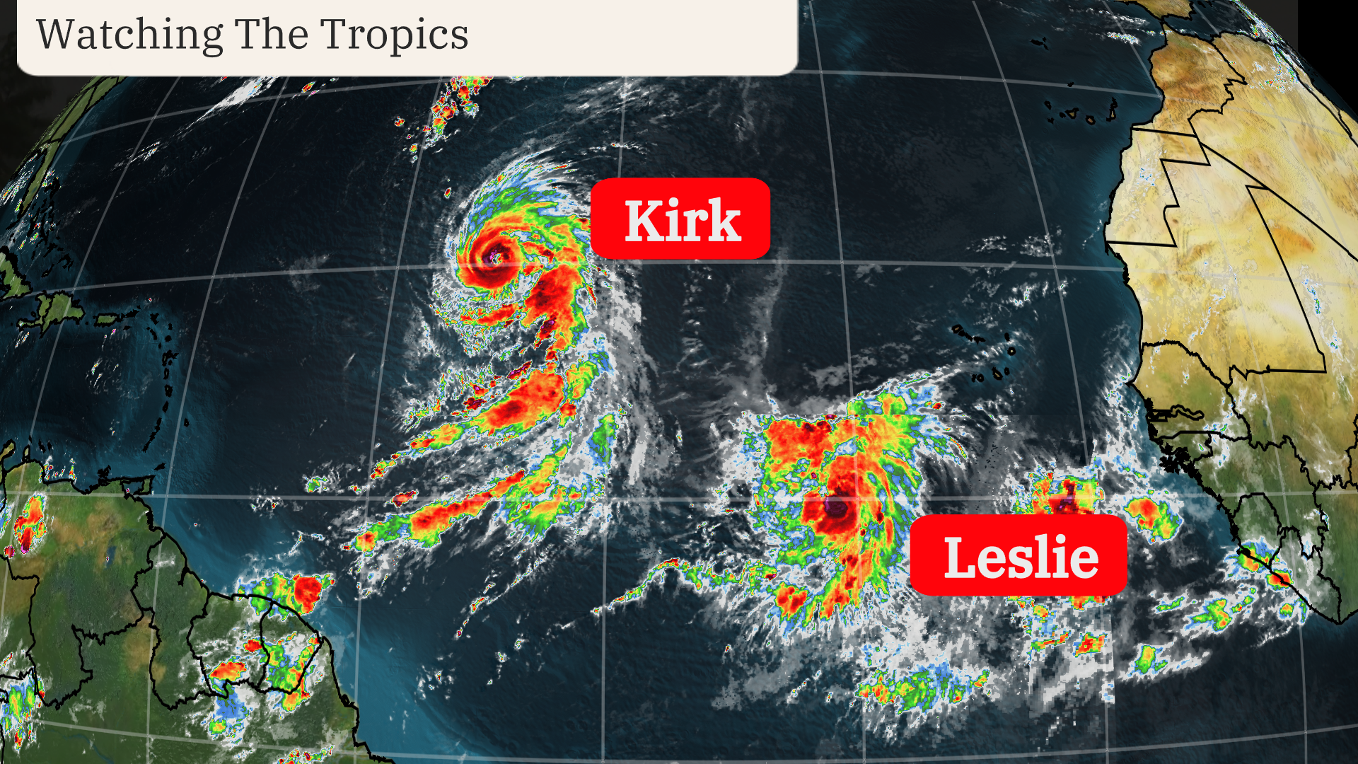 Even though they are likely to be fish storms, Kirk and Leslie can still cause disruptions to shipping routes, and Kirk may cause life-threatening swells and currents for Bermuda and the Leeward Islands.
