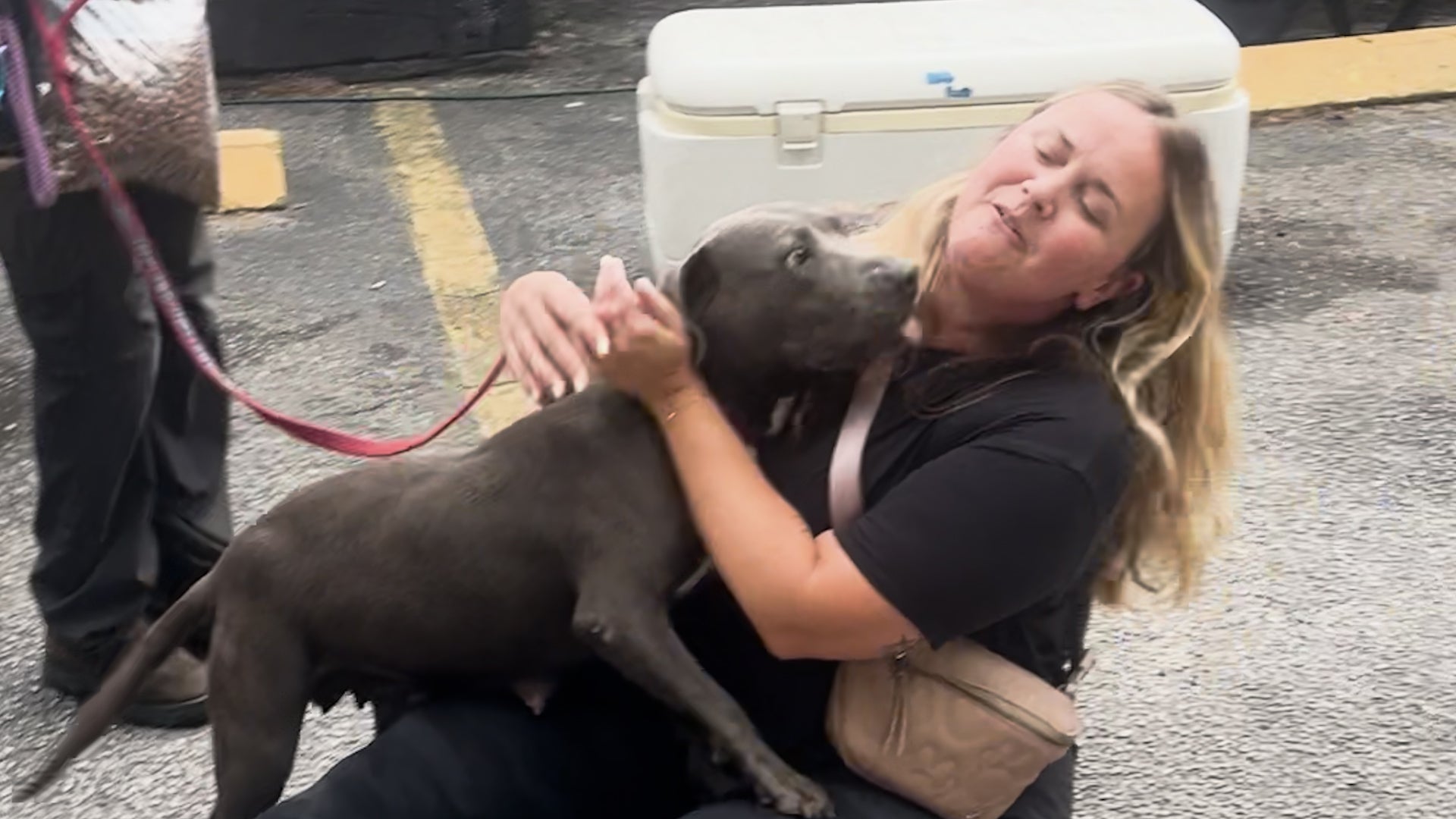 His new human, Brittney Woodward, picked him up from a shelter in Miami ahead of Hurricane Milton’s arrival in Florida to foster him during the worst of the storm.
