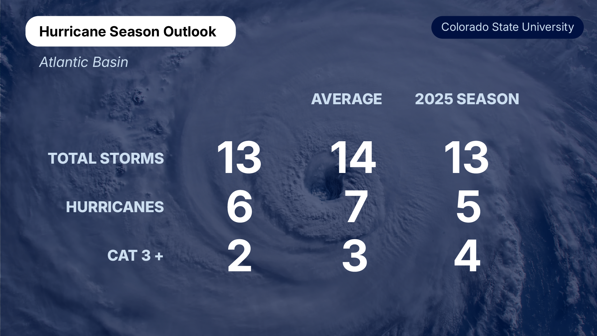 The first outlook: Colorado State University's tropical meteorology project team is forecasting 13 storms, six of which will become hurricanes and two of which will reach Category 3 status or stronger, in its first outlook for 2026 released Thursday.
