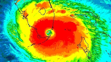 Infrared imagery of Hurricane Andrew just after landfall in southeastern Florida on Aug. 24, 1992.