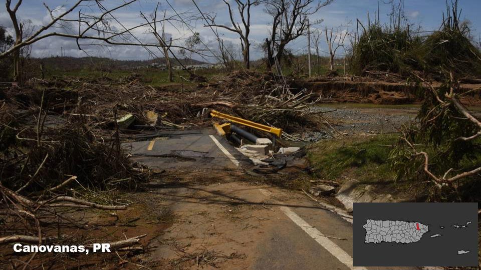 The rushing floodwaters led to washed out bridges, roads and large piles of debris. Power lines became entangled with this particular debris pile in northeast Puerto Rico.
