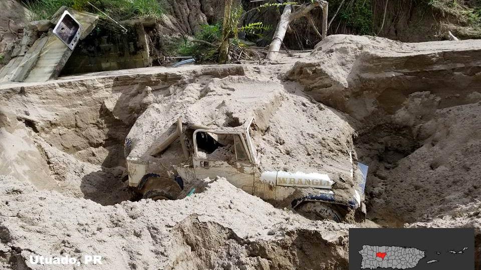Also near Utuado the NWS photographed this vehicle that was buried by a landslide.