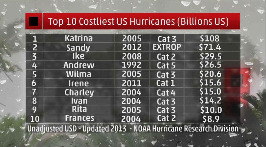 In fact, according to the Hurricane Research Division, Allison comes in at No. 13 on this list as a tropical storm when you include Sandy in the rankings. Allison did $5 billion in damage.