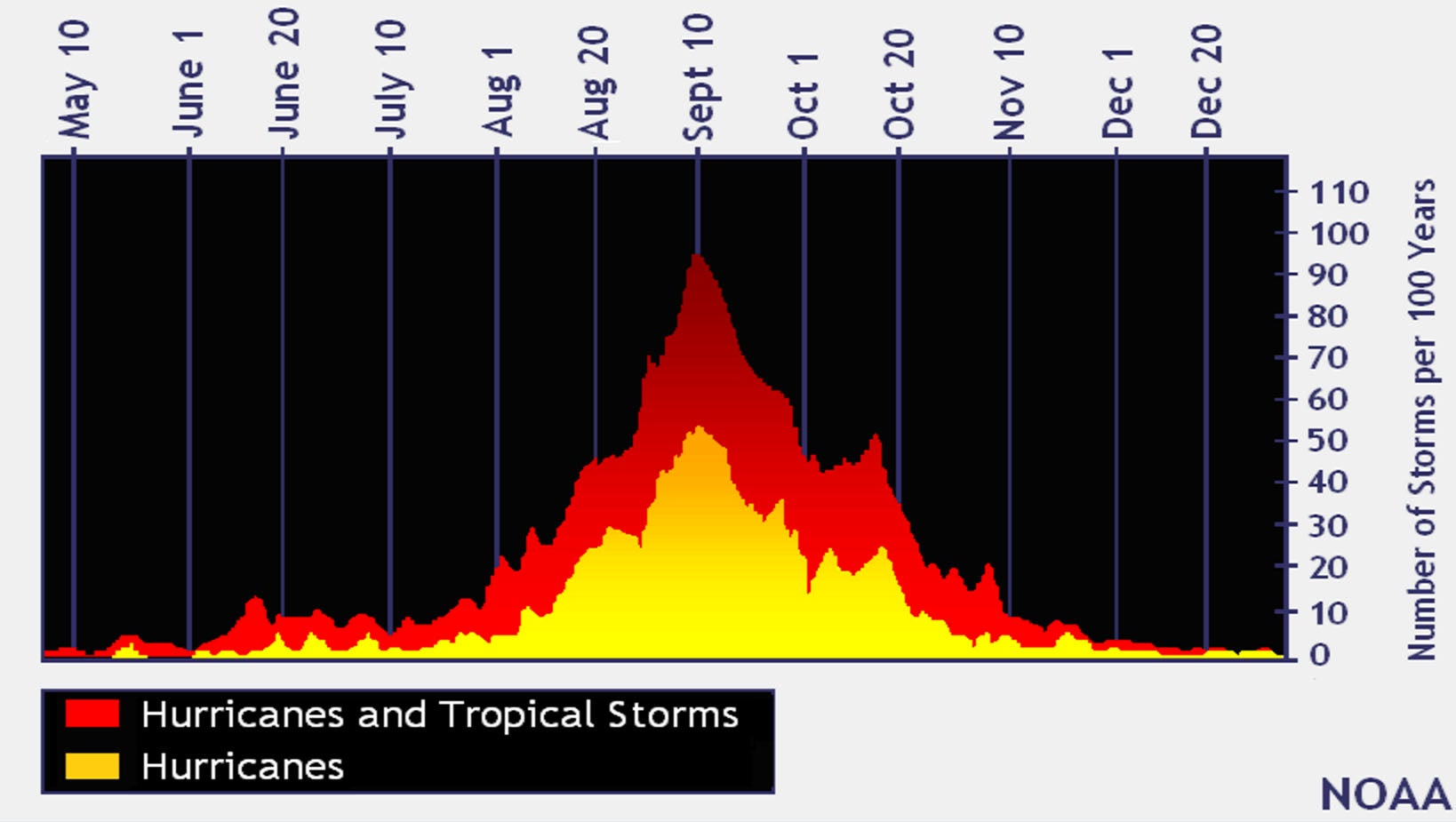 The Atlantic hurricane season runs from June to November, and peaks in activity in early September