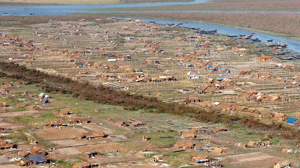 An aerial view of damage to a village and infrastructure following Cyclone Sidr, which swept into southern Bangladesh on Nov. 15, 2007. (U.S. Navy)
