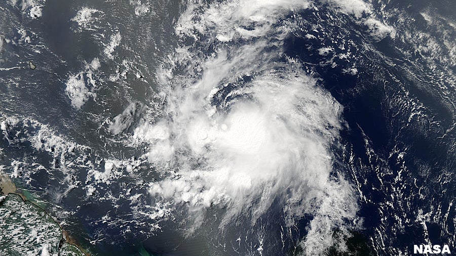 As the storm moved briskly into the eastern Caribbean, it struggled to remain intact due to strong winds in the upper atmosphere.