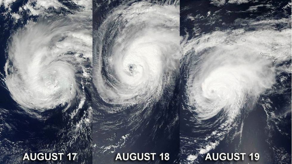 Satellite images of Gordon on three consecutive days in August.