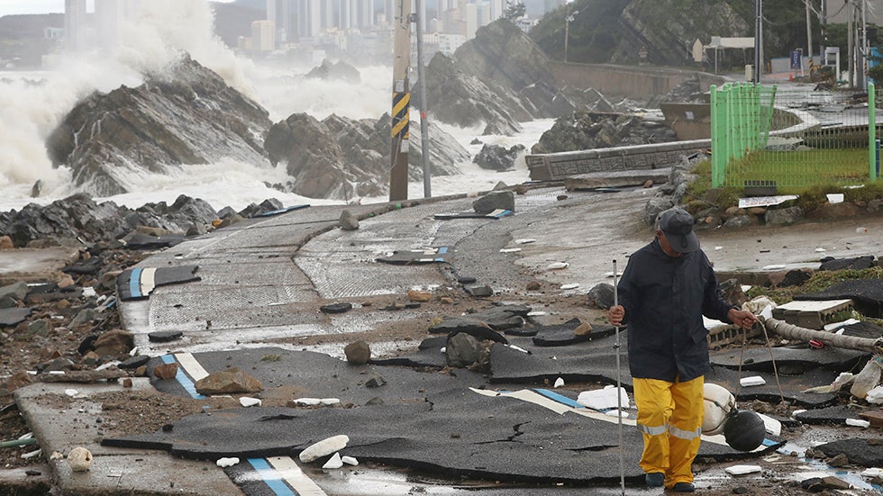 Typhoon Hinnamnor left a trail of destruction along the southeast coast of South Korea with 105-mph winds and torrential, flooding rain and surge.