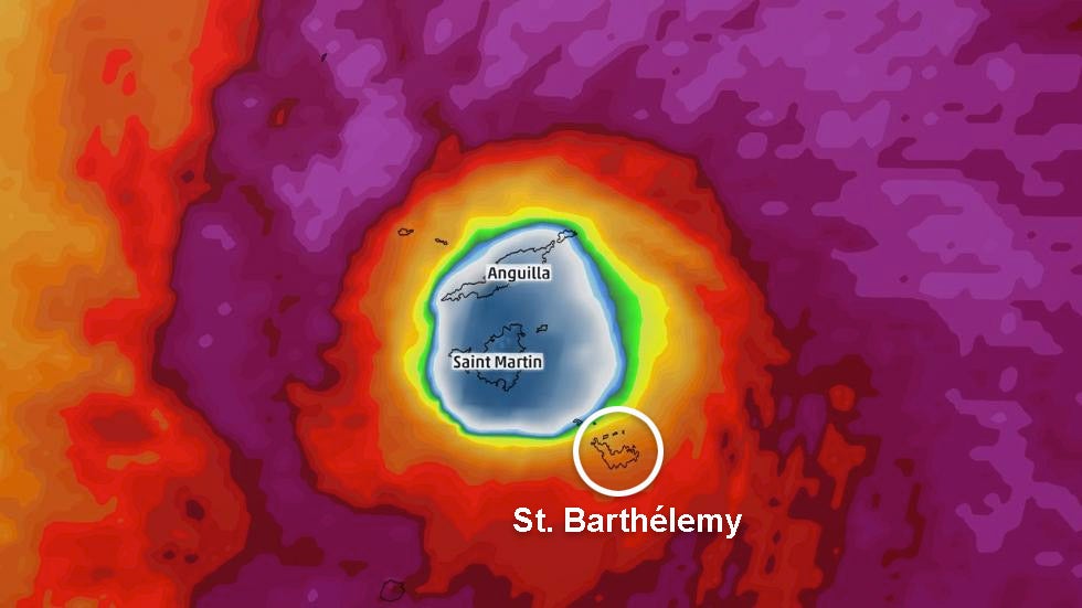 At the time, Irma was at its peak intensity as a Category 5 hurricane with maximum sustained winds of 180 mph. St. Barthélemy took a direct hit from the eyewall of Irma which contains the most ferocious winds in hurricanes.