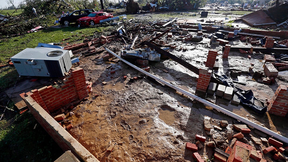 Bricks and some piping are all that remain of a house that was blown off its foundation by an April 28, 2014, tornado in Louisville, Mississippi, an area covered by an SPC high-risk severe weather forecast that day.