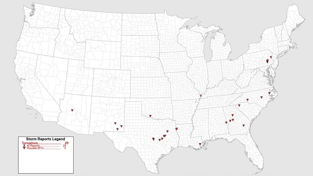 As of the time this article was published, NOAA's Storm Prediction Center had received only 31 reports of tornadoes during the first several days of May.