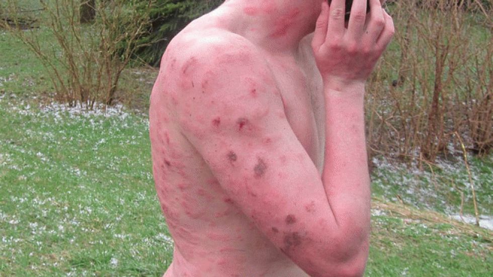 The photo below show the welts all over the body of a runner that was caught outside in a hailstorm in Iowa during the spring of 2010.