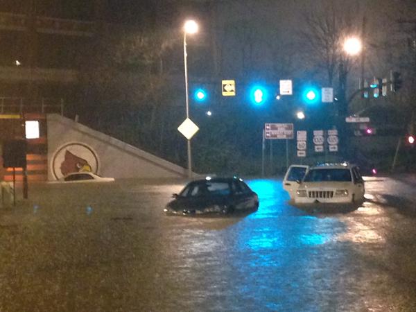 Floods are seen in Louisville, Ky. on Friday, April 3, 2015. (@maxoverstreet/instagram)