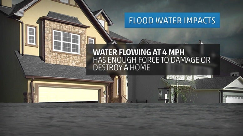 Most flash floods can generate at least 1.34 horsepower per square meter of water, exerting 18.7 horsepower on a 30-foot wide section of a home.