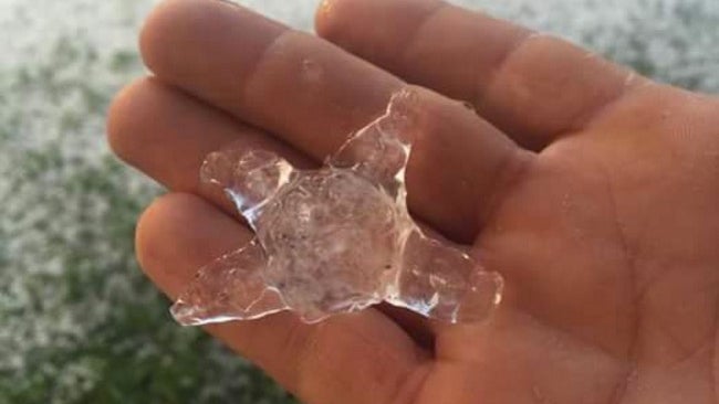 Star-shaped hailstones near Corning, California, on January 23, 2016.