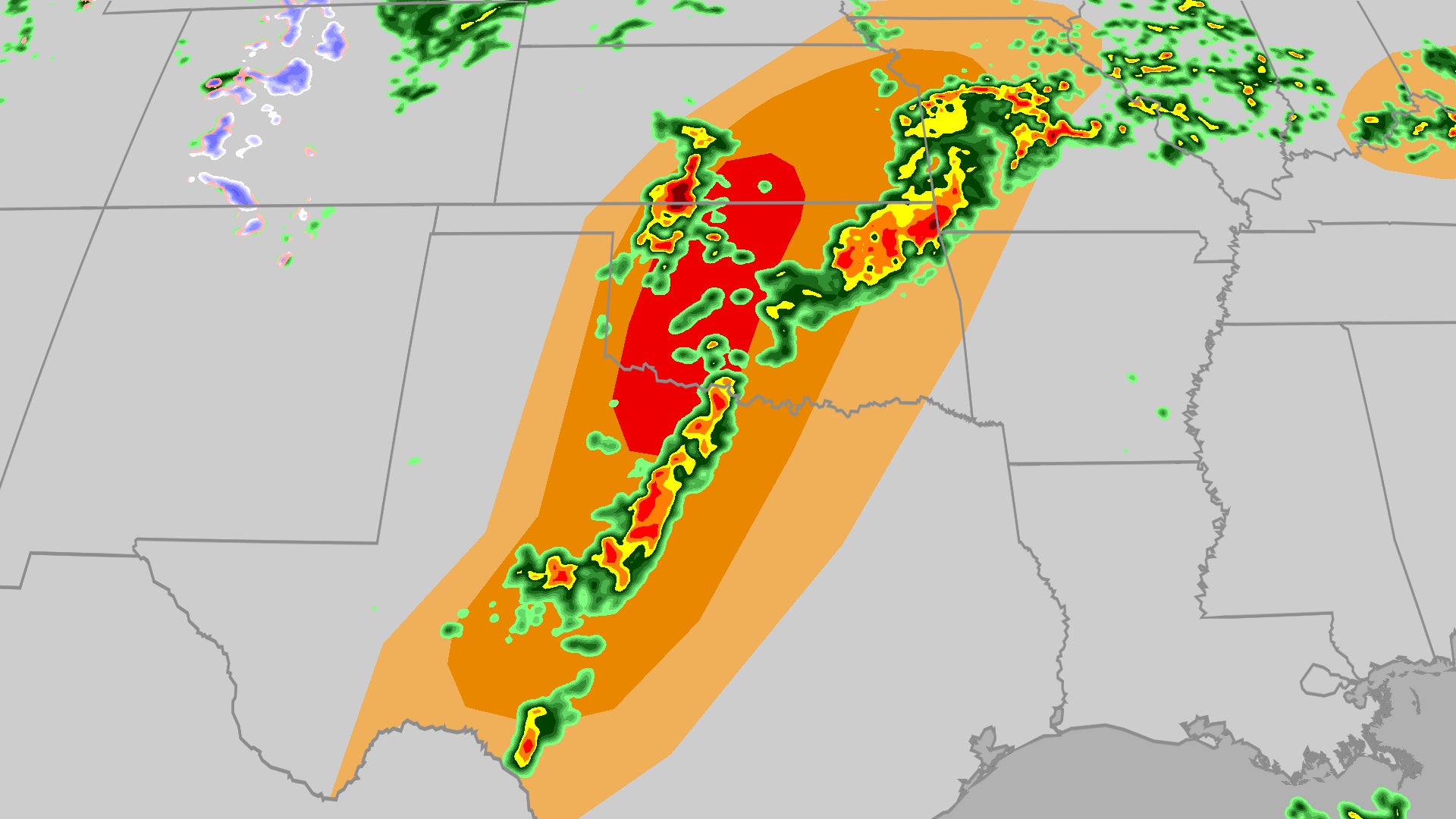 The severe threat increases to a level 3 out of 5 Wednesday into Wednesday night and includes places like Oklahoma City, Wichita and Wichita Falls. Damaging winds in excess of 75 mph, hail larger than golf balls and a few tornadoes will all be possible. Make sure you have multiple ways to receive warnings. Watch this video for your hour-by-hour forecast.