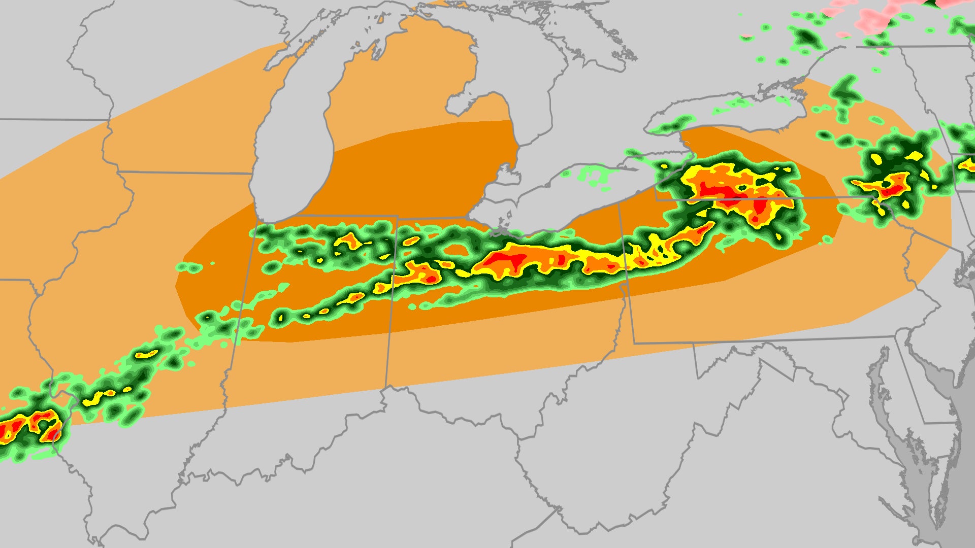 An active spring pattern is taking shape this week bringing the chance for severe storms several days in a row. Tuesday’s severe threat stretches from the Midwest and Great Lakes over to the Northeast. Damaging winds, large hail and isolated tornadoes will all be possible. The severe risk drops to a level 1 out of 5 Wednesday, but still includes some big cities like Columbus, Pittsburgh, Baltimore and Washington. Heavy rain could also lead to flooding. Watch this video for your hour-by-hour forecast.