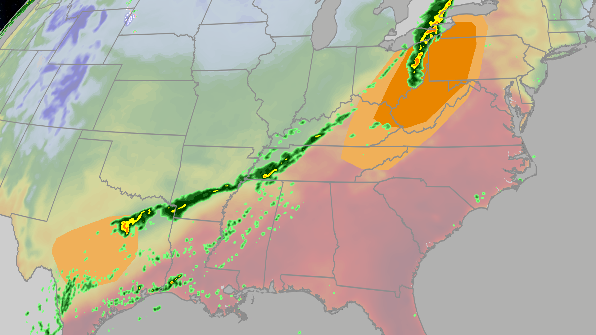 One final day of severe thunderstorms is ahead after a full week of damaging winds and tornadoes. Saturday’s threat comes for parts of the upper Ohio Valley and Appalachians, including Buffalo, New York; Cleveland, Ohio; Pittsburgh, Pennsylvania; and Charleston, West Virginia. Damaging winds will be the main threat in this area, but an isolated tornado and some hail are possible.